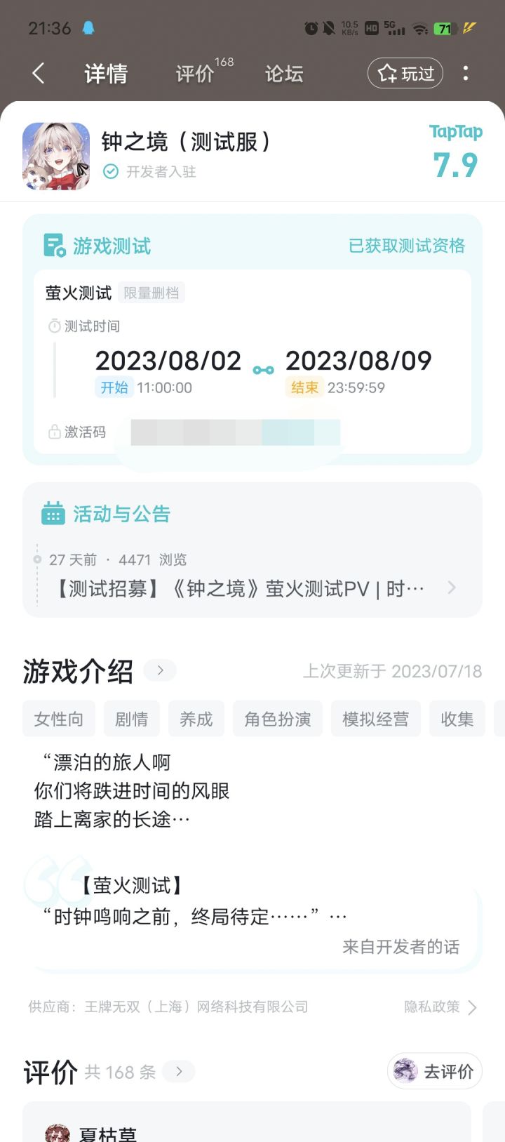 刚刚上tap发现有激活码哈哈好激动!!!