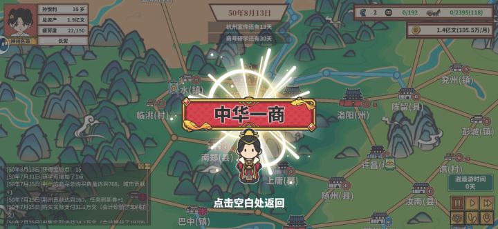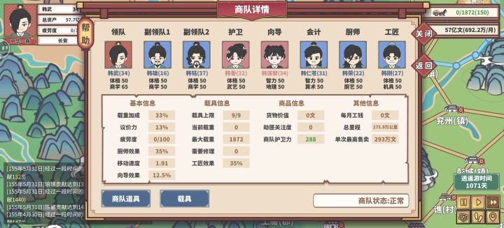 : 临洮也是个不错的选择浅落 : 不过有几个缺点,刚开始还可以,时间是伴随运输而动的,后面的话商会经营后希望能出一个玩家可设置的时间自动流逝。还有宅基地的扩张,需要那么多材料,不停地完成材料产地的任务,才能获得贡献值解锁对应所需的材料,太麻烦了。升级带来的收益也非常少,人口最大容量只增加一点点…