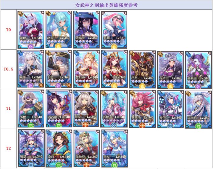 首先,第一点,你要理解这个游戏,你的队伍什么状态才是最强的,资源集中到主力角色身上,2个200级打你一队150级是非常轻松的。然后,可以根据上面的那个说法,把官方那张t表忽视掉。因为前面也说,高等级高星数就是任性,t表角色只是同练度的情况下欺负你而已,你完全可以练其他4技能英雄。比如联邦的摇晃组合又比如迫害高攻仔,后期转型可以跟吕布组成偷屁股2人组。再或者出云的只要是4技能战士,都可以