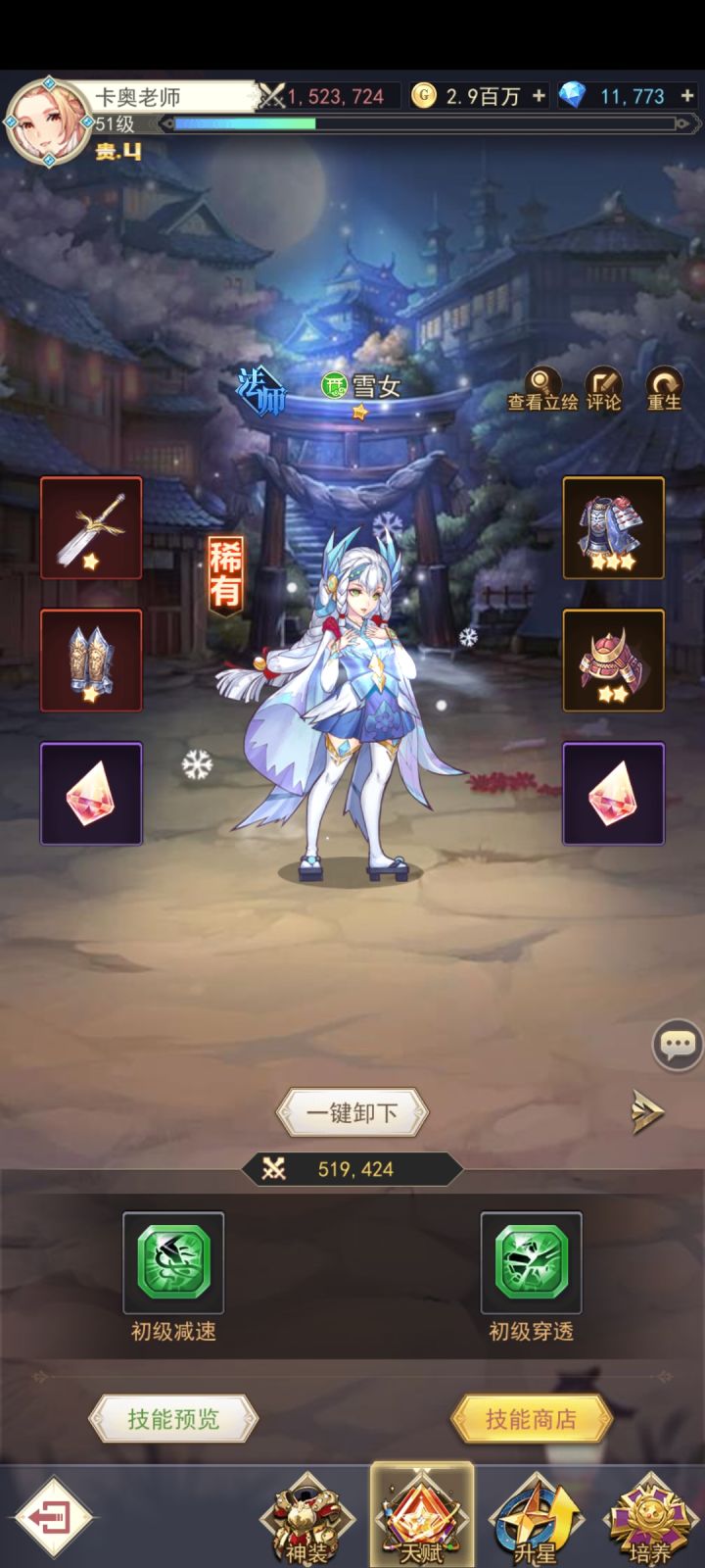如题科普向思路100区 只花了一百块 七天挑战全过用雪女控 加一个c输出 群体攻击都带减速天赋过了七天挑战多多尝试 站位如下 雪女要一速 1900加 带中级以上迅捷符文宝石 法连宝石 辅助都带保命减伤 图上有配置