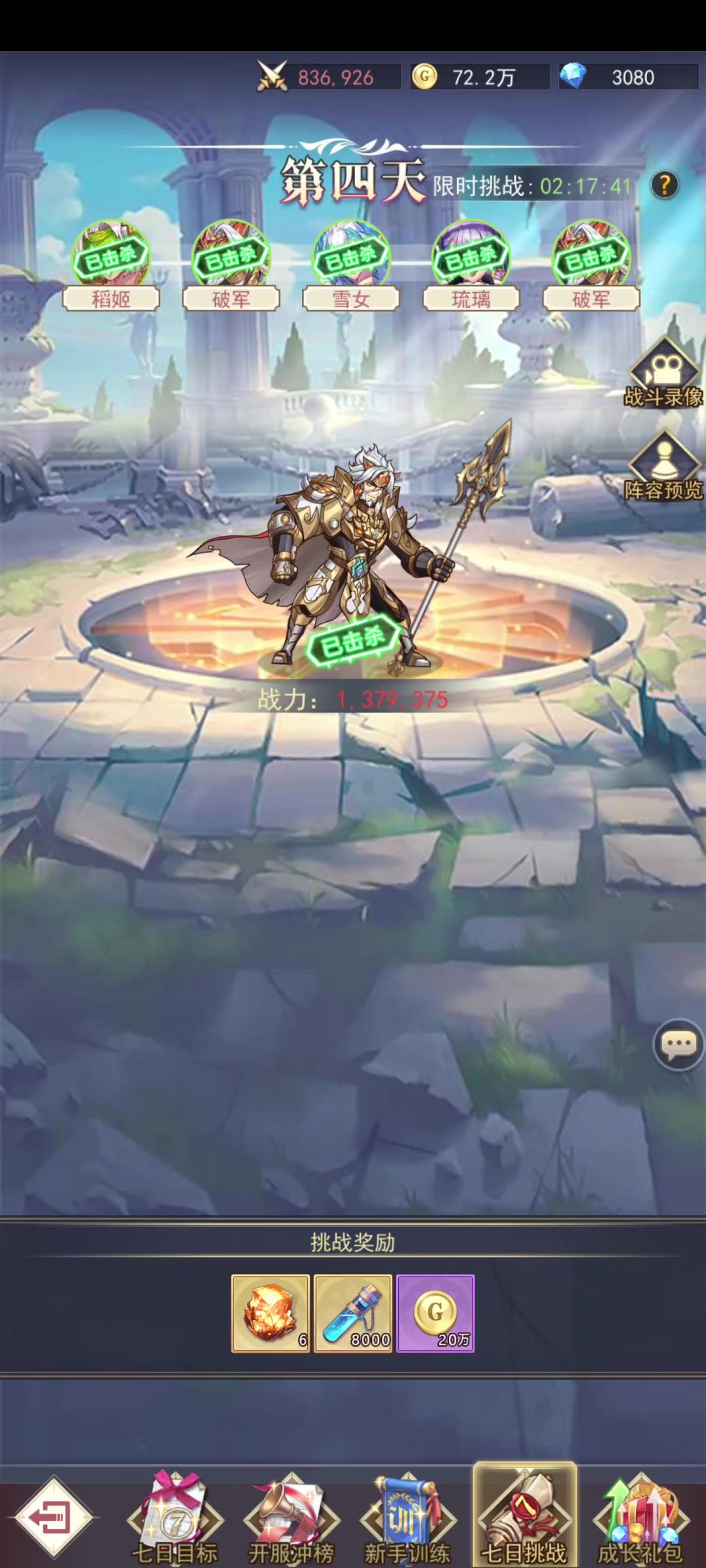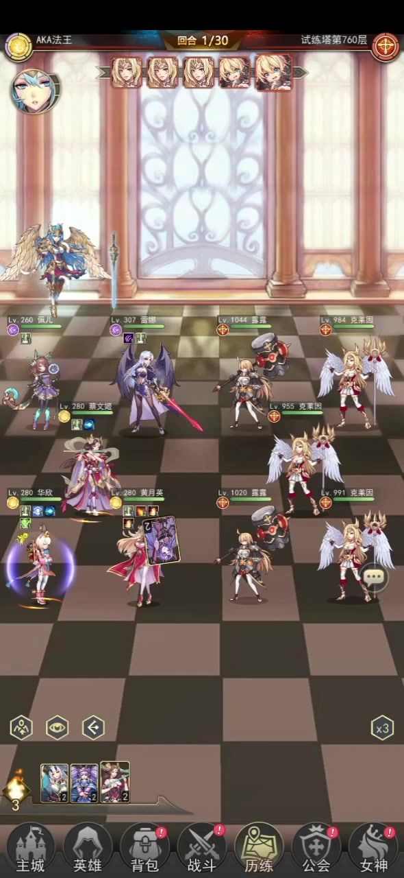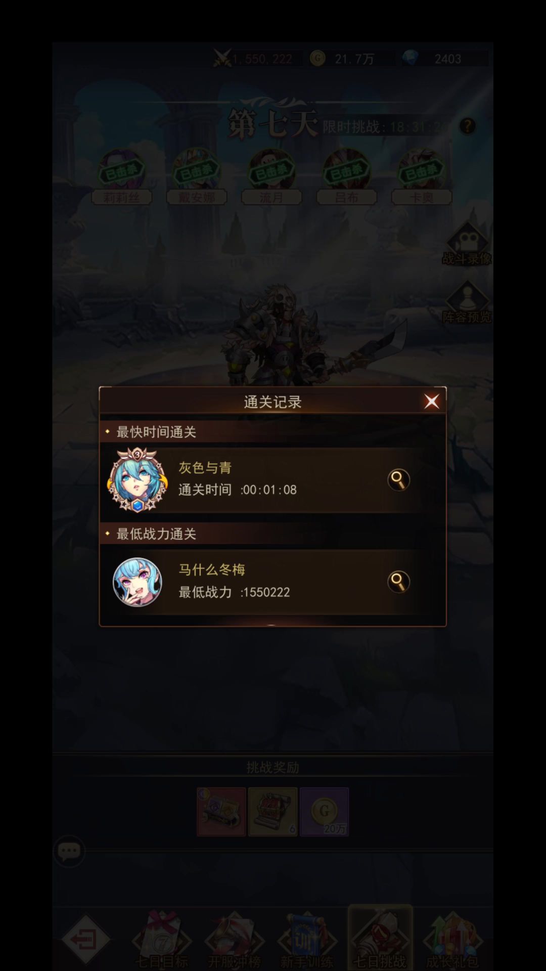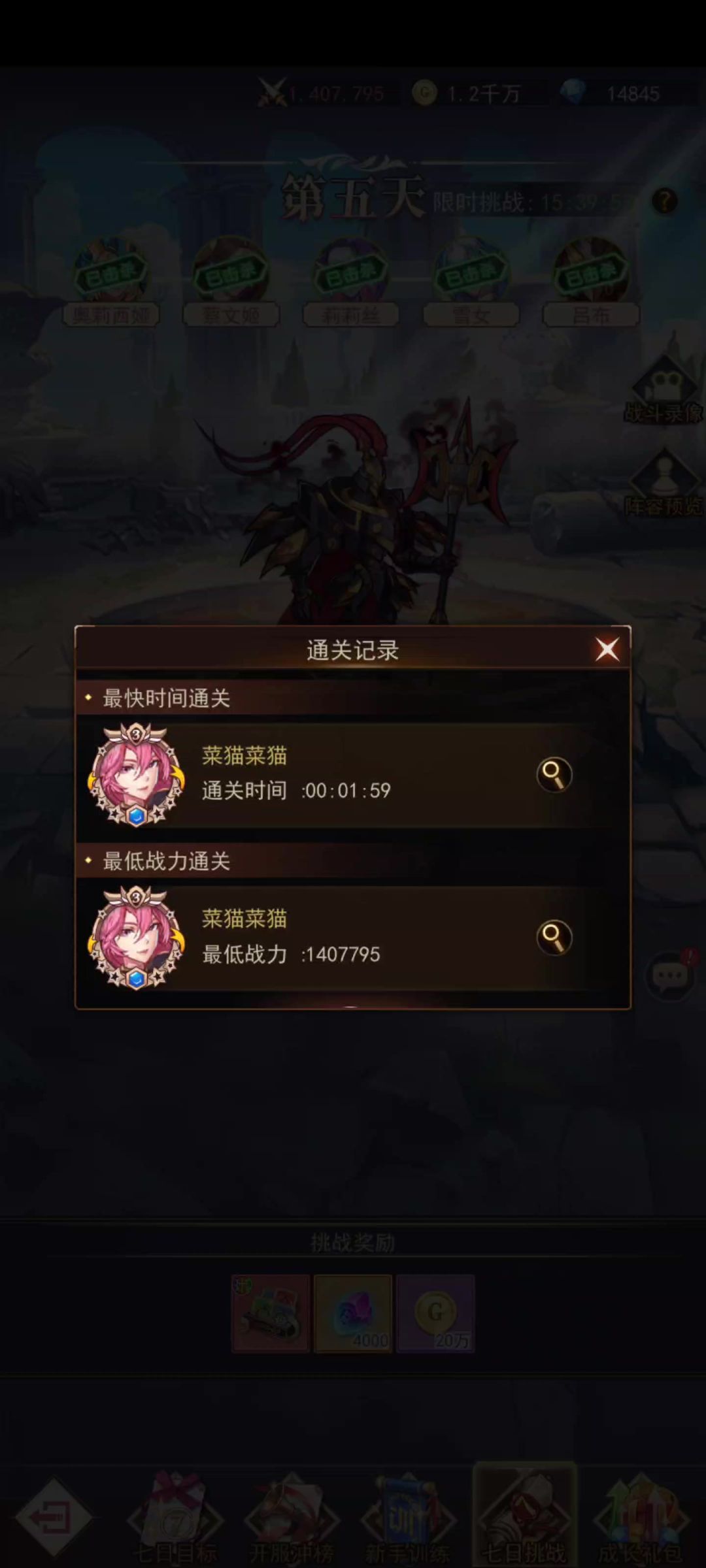 今天也是运气很好出了一次闪避,刚好闪避也是最关键的时候触发了。还是先说说站位问题,露露对位蕾娜,塞斯纳放最下边,能抗一点放左边中间,最脆的放中间,一般脆的放最右边,阵型还是地绝阵,11星赛斯蕾还是很吃力的,同11星乔伊战力比我低就过了。打不过的时候就多看看问题出在哪,就赌对面出不出暴击自己出不出物连和法连。这五天过来就第三天和第五天是个坎,比较难打。大家有更好的思路也可以分享一下,毕竟能过是最好的