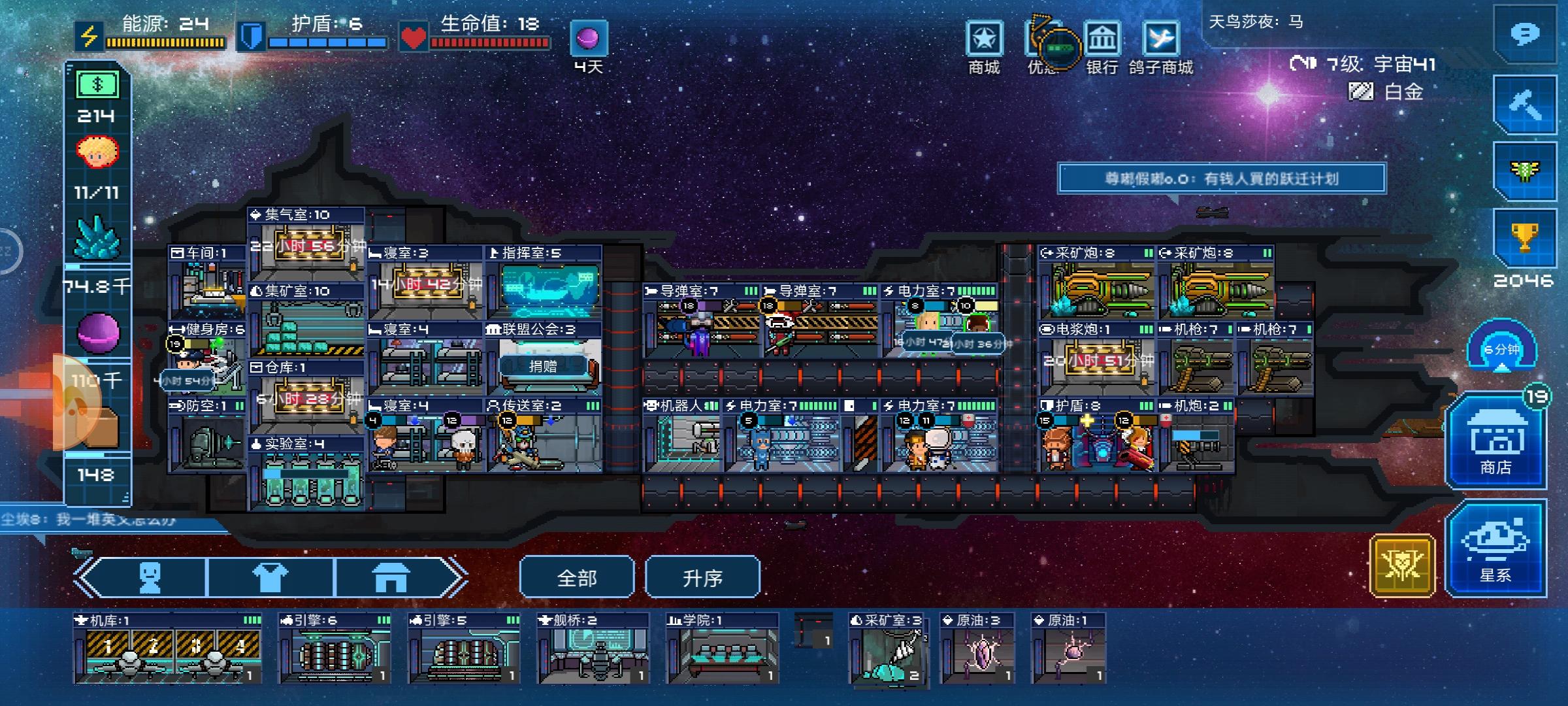 1、资源的获取晶矿和燃气的暴富只适用于莫得感情的PVP杀手以及一脸慈祥的黑商,这个游戏就没有种田的说法,快快打多多卖早早升级才是王道。虚空粒子只有NPC、主线、任务奖励和虚空活动会掉,偶尔日常探索会遇到奖励船打过了给五绿票,粒子获得的大头还是打飞碟每日早中晚三次,建议开传送偷电力室比较稳,所以建议多多探图,更容易拦截飞碟(8、12、20时左右打容易追上)。装备、模块的获取优先找星系中的商船兑换,