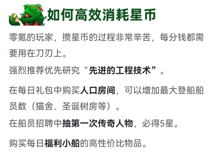 北顾关山在,境异趣亦别 本帖为超时空星舰攻略合集,一部分为收录,一部分为个人理解,如有错误欢迎指出。 这游戏的引导不是很好,很多东西第一次玩弄不懂是干什么用,大佬又基本不在论坛发帖,故而整理了这样一个资料帖,希望能对大家有用。PS:有什么想问的可以在评论区回复,懂的我都会解答。另外,欢迎有兴趣的同好加入北境舰队。 最近更新日期:2024/1/5【游戏内容】布局:丨船员:丨丨丨五星丨其