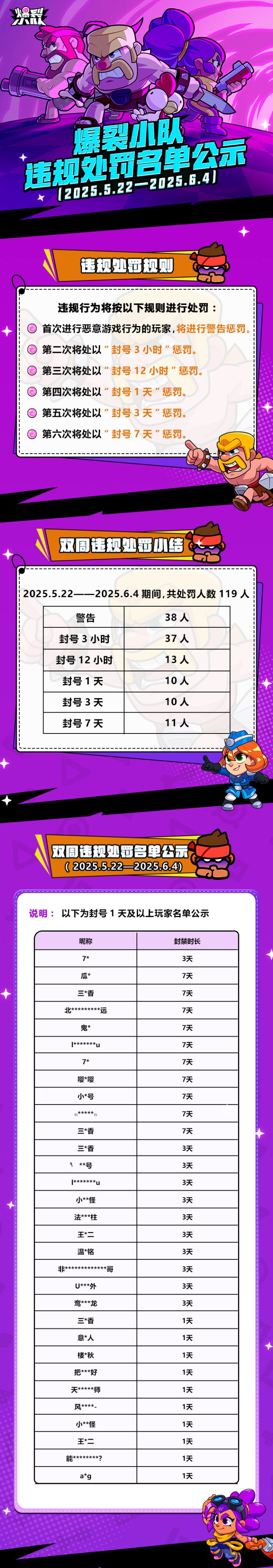 爆裂小队违规处罚名单公示(5.22—6.4)