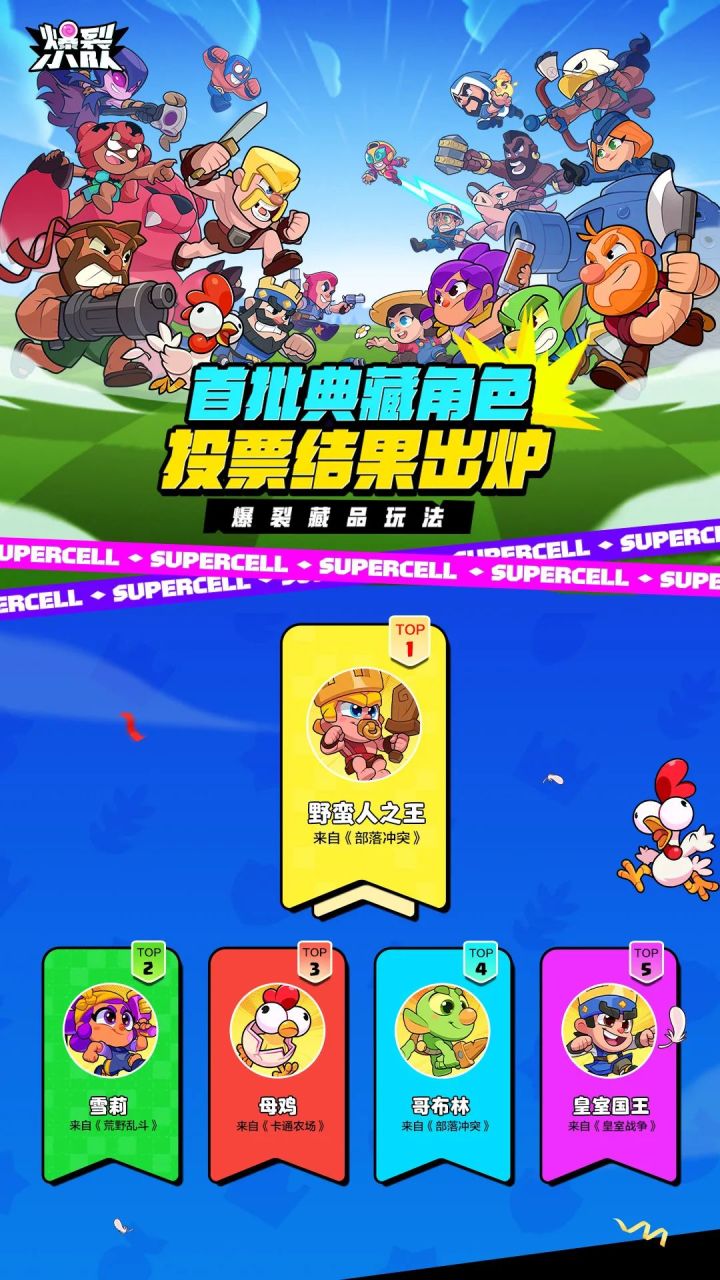 各位队长!阿爆今天给大家带来了一个激动人心的消息!爆裂藏品玩法首批典藏角色投票结果新鲜出炉!野蛮人之王以超高人气一马当先成为当之无谓的“人气王”,携手带领雪莉、母鸡、哥布林、皇室国王等4位人气角色共同突围,即将成为《爆裂小队》首批典藏角色!未来游戏内将上线藏品玩法,参与即有机会解锁数字藏品,更有机会获得实体典藏!各位队长可要攒足期待了哟~藏品玩法详细内容还请关注后续官方资讯!【爆裂藏品玩