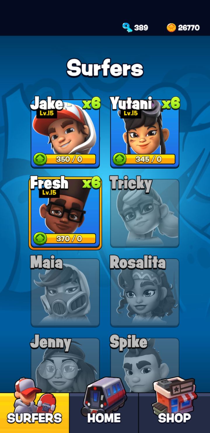 人物部分个人目前感觉还是youtani的技能时长加倍和滑板加倍功能使用起来比较顺手,小黑的滑板+三倍,和加倍星多加1倍的技能倍数增长确实很恐怖,但是使用下来操作手感真的还不太行,一代的倍数就是一切的感觉,小黑应该更强,但是却是我最后一个到10万上的人物(当然手残是原罪),体感感觉小黑的倍数增加分数变化不明显,感觉加倍存在问题(只是感觉没有实际测试,有测试确实倍数没问题的大佬可以说一下,不对的话我改掉),至于杰克,就不讲了,感觉中规中矩,金币累计滑板能量充能,出生自带滑板和开滑板给磁铁,收集金币上感觉会比较强。