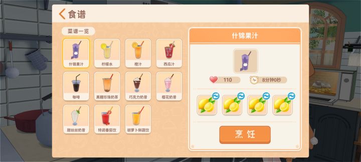有人发现吗?使用不同材料会做出不一样的料理。西瓜汁是什锦果汁全选西瓜,同理还有橙汁,我猜测还有柠檬汁,但没柠檬了,所以没有做,不过全选咖啡豆不会变成咖啡。蛋包饭调整最后一味调料也会有新菜品。同理其它菜品最后一味食材也可以换,因为我是刚刚发现,今天已经不能做了,所以没有尝试。而且这些新菜品都会格外加经验。#胡桃日记 #游戏杂谈 #游戏日常