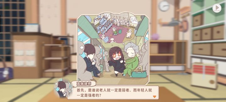 那段剧情讲的就是胡桃在车上想要让老奶奶坐着,不过他让看起来是律师的男子给这个看似身子骨弱的老奶奶让座,律师说的句句有理,胡桃也明白这是道德绑架,我再看到后面一段剧情,标题就是《恶德律师》他始终认为自己应该吵过这个律师觉得他太高傲了。其实伪善的人是你,高傲自大的人也是你,我不知道作者怎么想的,看到这里我瞬间感到下头了