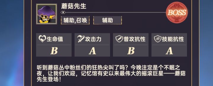 蘑菇先生:召唤,一般喜欢弹吉他不攻击,召唤孢子,孢子持续一段时间没有被消灭就会生成小蘑菇怪,若场上有小蘑菇怪则生成中蘑菇怪或大蘑菇怪。虚空游荡者:刺客。暂时不知道技能或效果。厉蛇:刺客,首次攻击附带造成重伤,每秒持续流失1%最大生命值,减少20%生命恢复。蜂语人:辅助,普攻不造成伤害,改为对友方怪物回血,暂时不知道是单体加血还是小范围加血。镜中学者:刺客,每隔一段时间会向主角后方位移。墓