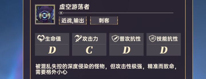 蘑菇先生:召唤,一般喜欢弹吉他不攻击,召唤孢子,孢子持续一段时间没有被消灭就会生成小蘑菇怪,若场上有小蘑菇怪则生成中蘑菇怪或大蘑菇怪。虚空游荡者:刺客。暂时不知道技能或效果。厉蛇:刺客,首次攻击附带造成重伤,每秒持续流失1%最大生命值,减少20%生命恢复。蜂语人:辅助,普攻不造成伤害,改为对友方怪物回血,暂时不知道是单体加血还是小范围加血。镜中学者:刺客,每隔一段时间会向主角后方位移。墓