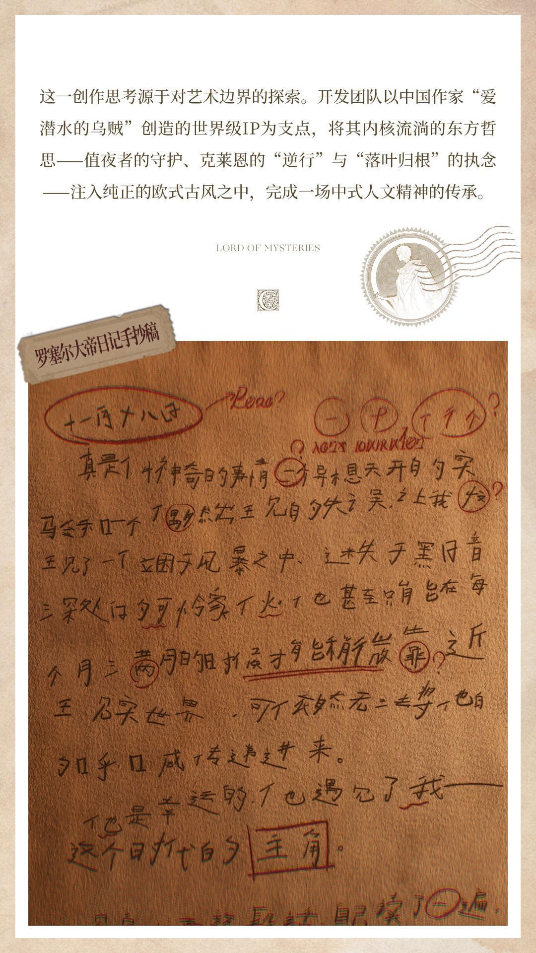 你好,非凡者。欢迎来到《诡秘之主》游戏,欢迎来到廷根。我们希望为大家提供一种全新的可能。不同于刀光剑影的武侠江湖或者二次元幻想。为大家呈现一个以欧式古风为皮,以东方哲思为魂的独特的异世界。
