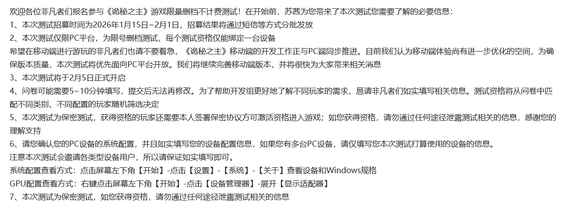 诡秘之主疑似1月15日开放首测资格招募
