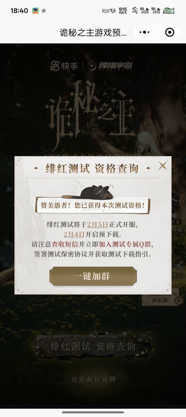 游戏下好了,官网上显示我有资格,但是游戏进入页面又显示说我未获得资格,什么意思啊!