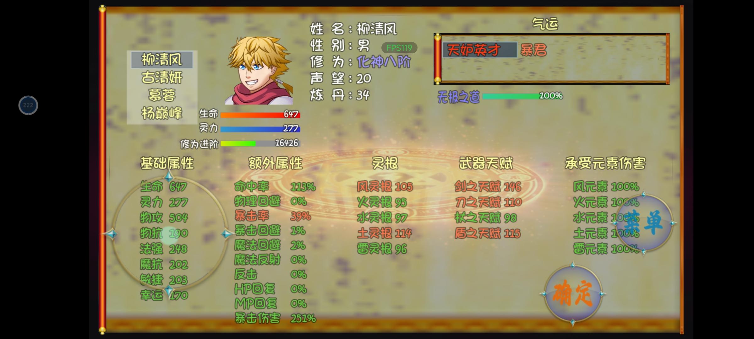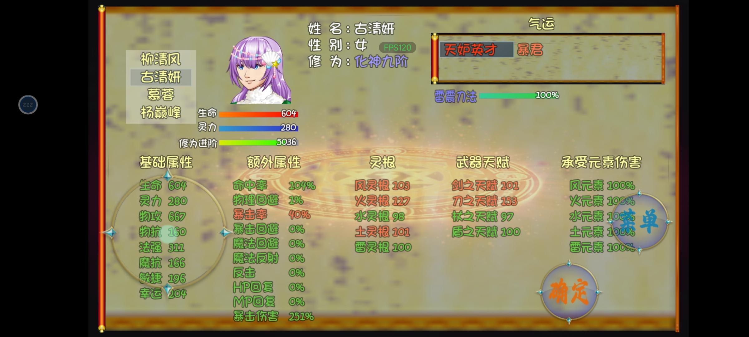 上个存档只打到金丹10阶,感觉这个游戏是不是不选暴击天赋叠不到高暴击率的??所以设想了一个暴击流玩法,希望有大佬指正! 一般刷天赋灵根+武器能上310已经很优秀了,不考虑暴率输出计算:100*2.1=210。 暴击流单武器天赋刷120多,灵根比较随意就按平均110算,加上红色天妒或者天选的25%:(100*1.55)*2.35()=364。起手锁定暴君天赋,然后一直刷天妒英才(物理流剑或者刀),天
