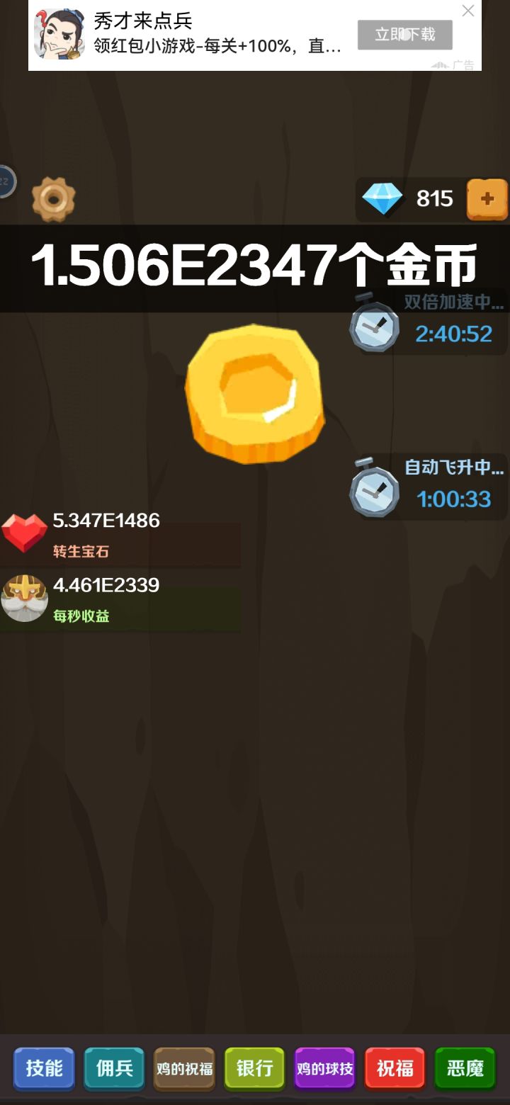 想看广告收益X2,自动飞升完全没反应。