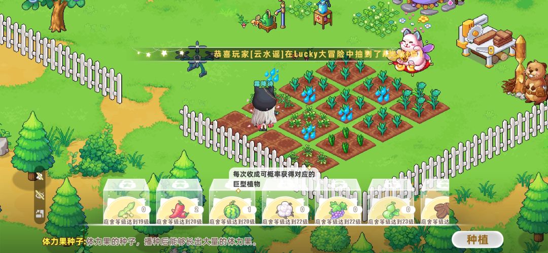 种子目前有绿,蓝,紫三种 绿色:正常采集就会出种子(比如土豆,萝卜这种采集起来快的)也可以找农场琥珀大叔购买或者换 蓝色:不知道能不能采集出来哈,我试了挺多体力没采集到蓝色种子,也可能脸黑(比如水稻,甘蔗这种采集起来比土豆萝卜慢一点) 紫色:地图里暂时是没有紫色稀有种子的,在庭舍-建造找种子合成机,紫色暂时只能被合成出来,都有什么可以看图1-3 紫色庭舍等级要求较大,短时间种不了,推荐种蓝色种子,