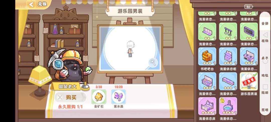 鼹鼠老大商店的服装兑换需要30个金矿+20个紫水晶。 商店是每天更新的,不是每次更新,每天去看一次如果没有服装就不用再刷了。(傻傻的我之前一天去刷了8.9次,在经人提醒之后才发现真相[表情_捂脸哭]) 刷商店小窍门:只去挖灰色方块(不花体力只花镐子耐久度),大概挖个50.60次就会有商店入口了。