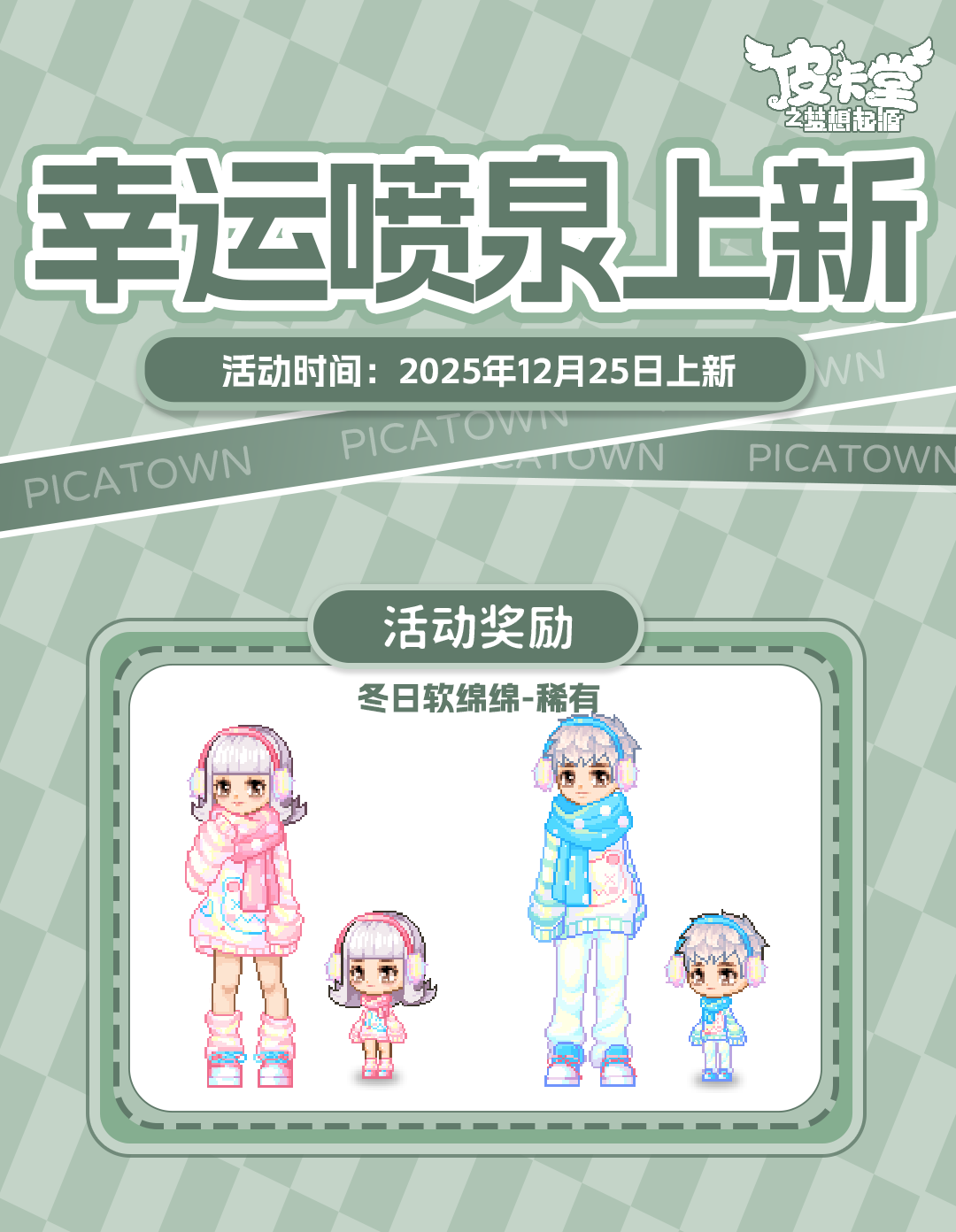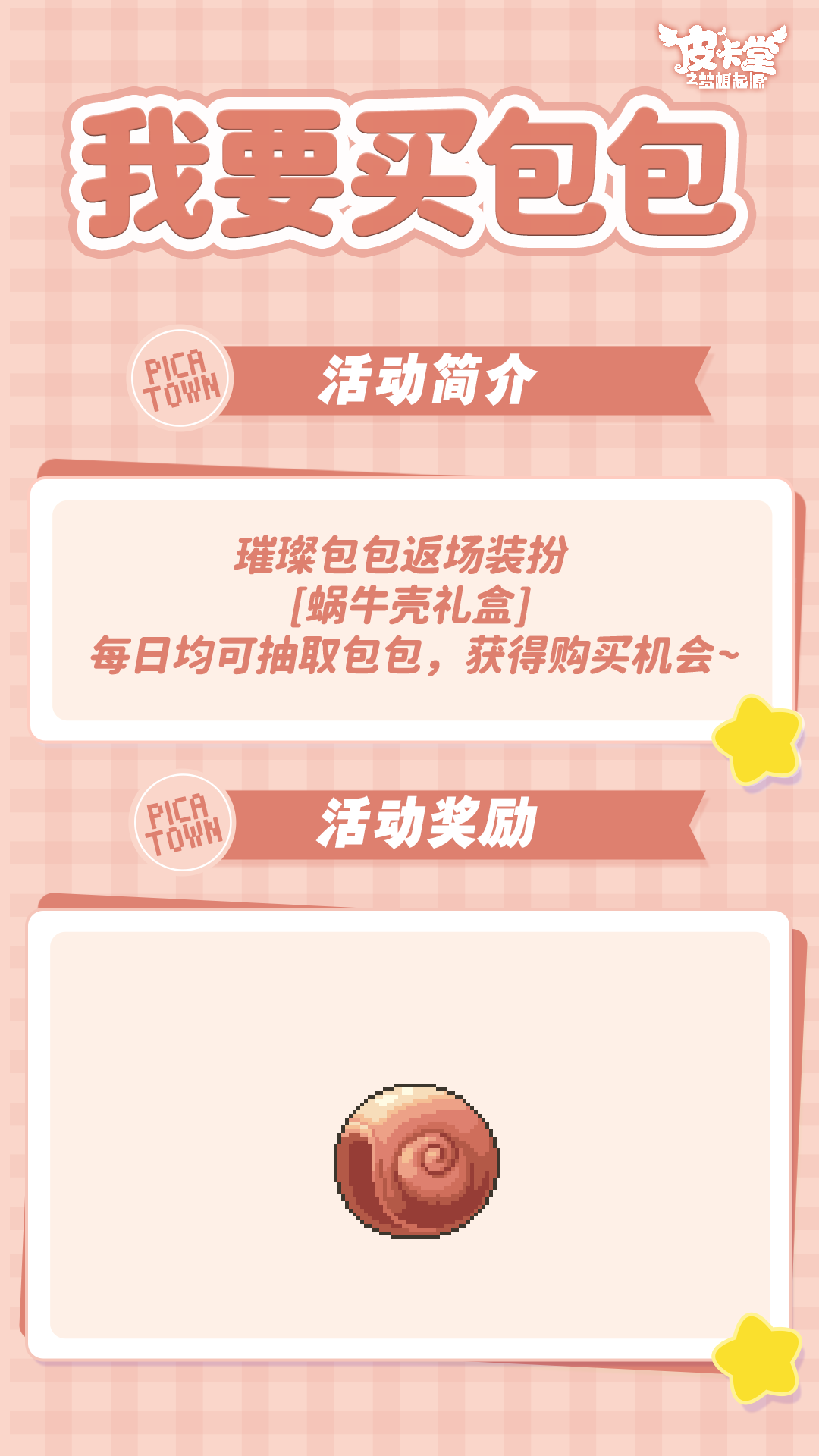 -【极乐翻转】弹指一挥间,天上地下,交给硬币来决定吧!小镇广场出现新机器,里面存着丰富的奖励,时装、家具等你来拿,只需抛出一枚小小的硬币--参与活动可获得典藏套装「草莓猫糕」、典藏套装「甜梦云朵」!-【设计师教室】知名服装设计师阿拉克涅开设了设计师教室,皮卡亲们都可以找她学习制作装扮图纸,阿拉克涅还会给予勤奋的学员额外的奖励。-【丰收通行证】更新上线!购买通行证并完成对应任务可获得套系家具「永