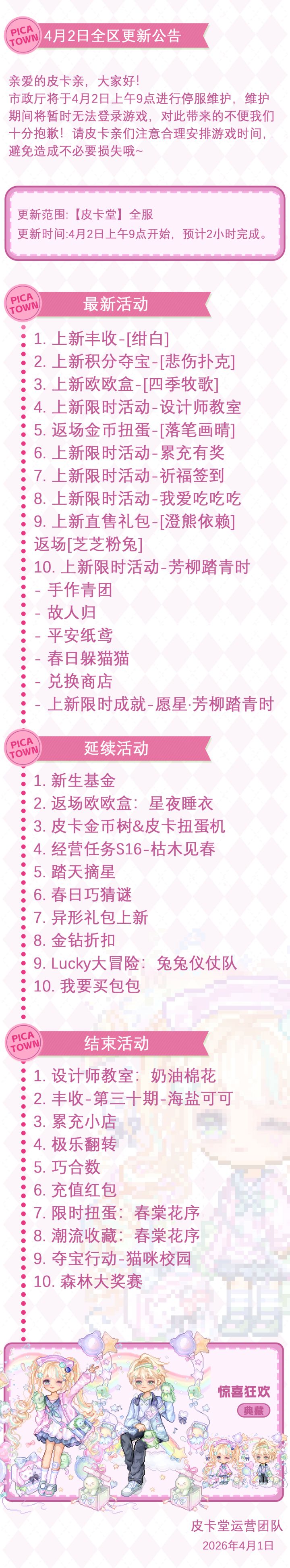 〓4月2日维护更新公告〓