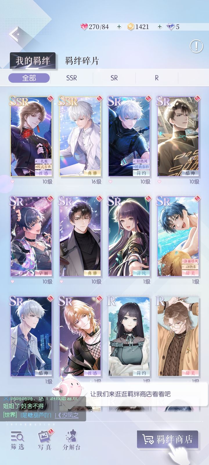 封面是我自己的,给不想看的人挡一下记录一下活动阁的顺序方便攒钻前十张是活动阁,上面的是双五星或者六星和五星,左下是四星和卡,右下两个是活动分解阁第一张是双五星,第二张是六星和五星(左上是六星),然后交替感觉游戏内实装都比预览图好看,建议去微博超话或者攻略组看一下实装图后4张的是免活套,四星没有头发,五星的带头发最后放一下免活套,出处是微博@橙子柠檬茶-