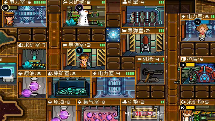 1、电梯是上下通行的,所以得排列成竖直一条线而且尽量连续,注意电梯的一层要齐房间底部顶层比上面的高一格,通风口则没有那么多限制;2、上下贴甲比左右贴要更有效率些,也不会妨碍电梯设计,如图护盾室我轻松贴了六层,主电力室也都有三层,多余的一股脑儿贴给了武器;3、矿气存储只与舰的等级和集矿室、集气室的储量有关,舰船升级有时候需满足前置条件,升级之前不要胡乱用箱子,容易爆仓被人惦记;4、实力远超对手