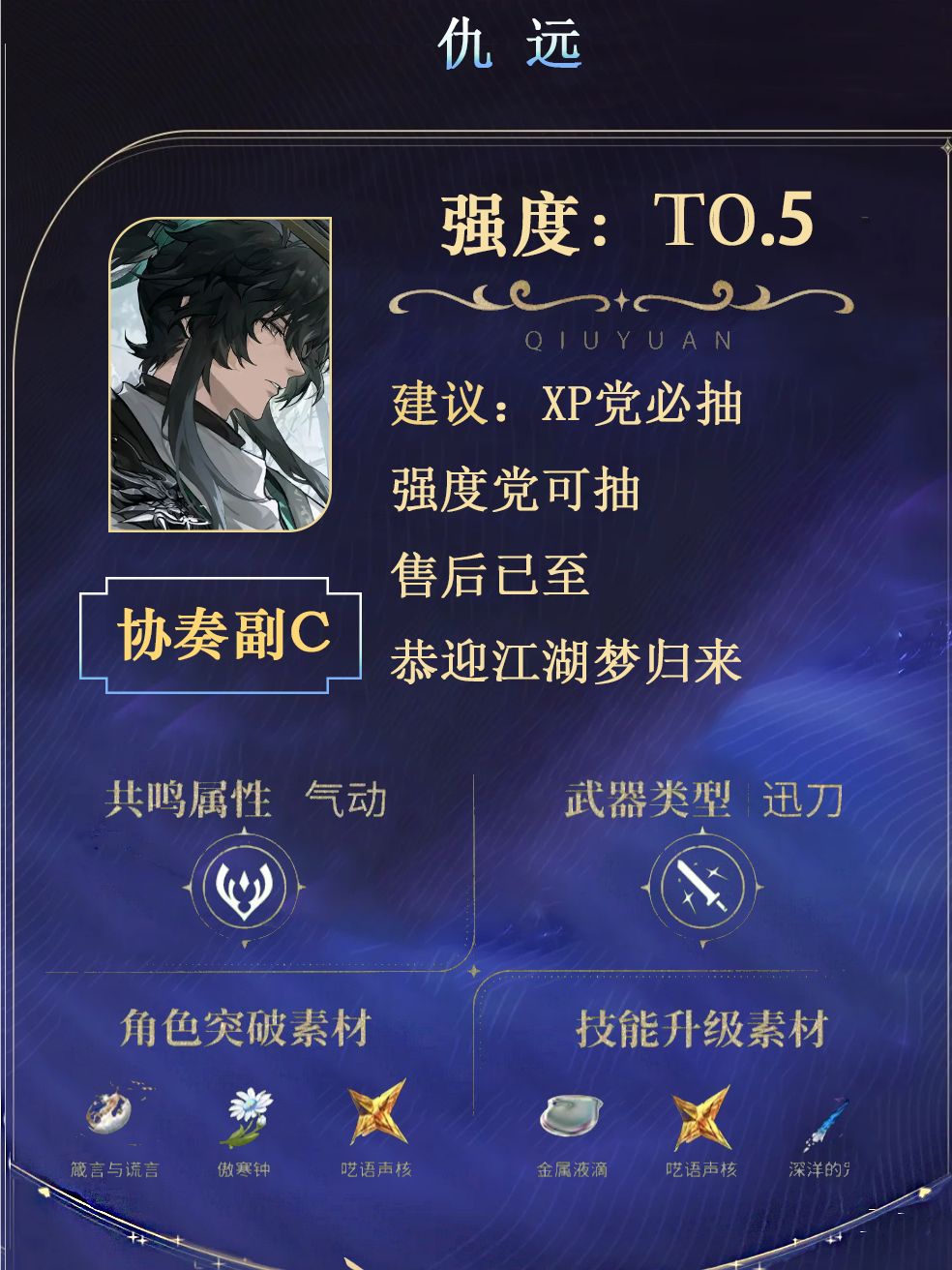 类似于赛马娘北黑的定位吧,没有可以替代她的执念卡这游戏有一个神女奇遇 第一次: 不跟:全属性+30(1属性1战力,4属性+30等于120战力) 跟上:全属性+15 第二次 不跟:全属性+60 跟上:给一本神女万相功 神女万相功练到100%可以+1000战力,我们可以练超100,利用各种手段让它提供2000战力 但是这个事件概率很低,你开60次炉子都不一定能遇上一次 大师姐满破有一个效果:随时随地都