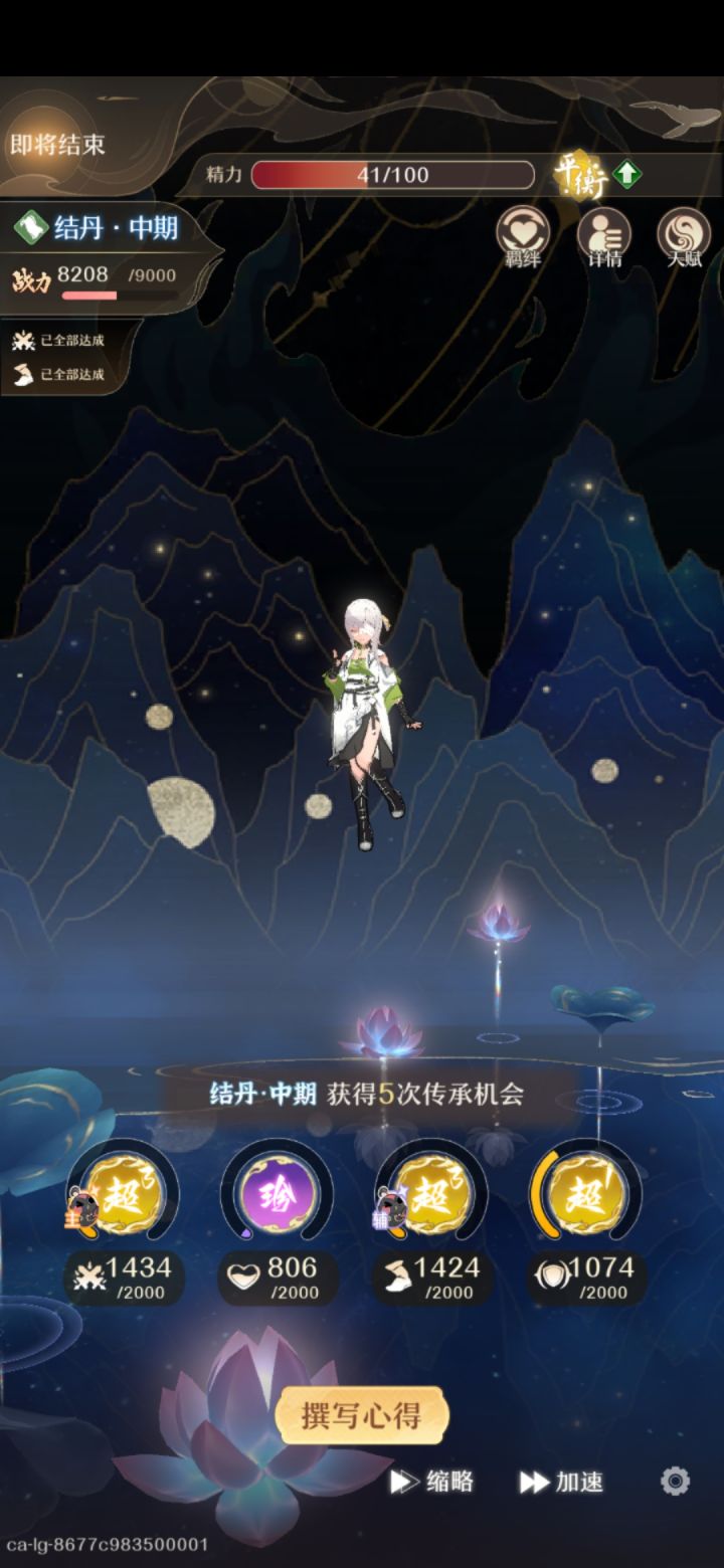 先说化神标准紫色弟子:2星5阶,主副属性执念等级和均超过200,功法两个4级两个3级,三次继承总等级超过84。 到达这个标准可以开始挑战突破化神。金色弟子:1星5阶,其它相同。如果想比较稳定的到化神,需要人物七阶,主副属性执念等级和均超过220,功法四个4级,继承总等级90以上。重要:弟子星级基本不影响修仙,甚至对战斗影响都极小,非巨氪不要抽弟子!!!下面介绍修炼策略执念配队3+3,浊