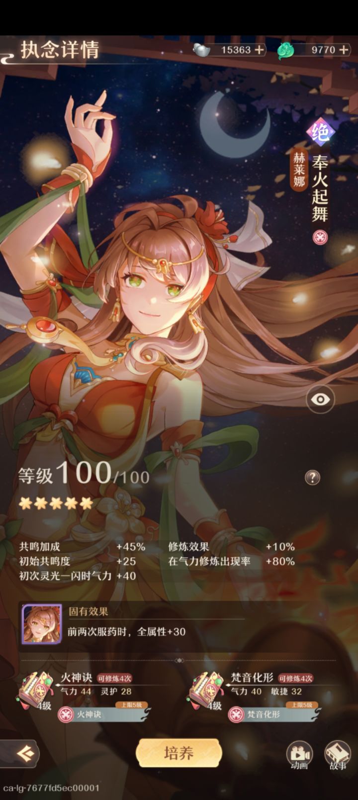 t0:慕连(慕连·坚强起来吧,慕连)、火舞(赫莱娜·奉火起舞)t0.5:小天才(何之燃·偃术小天才)、破坏者(蓝婉银·破坏者?守护者!)t1:苏醒(陵光·苏醒之刻)过渡用金卡:侠义(佘曼·侠义之心)t2:千年(陵光·千年守候)、纸灰(白渺·纸灰引魂)、叩问仙途(何之燃·叩问仙途)t0慕连:t0属性(+45,+15,+80),t0.5技能,和人物湘湘有羁绊加成,神卡火舞:t0属性,t0