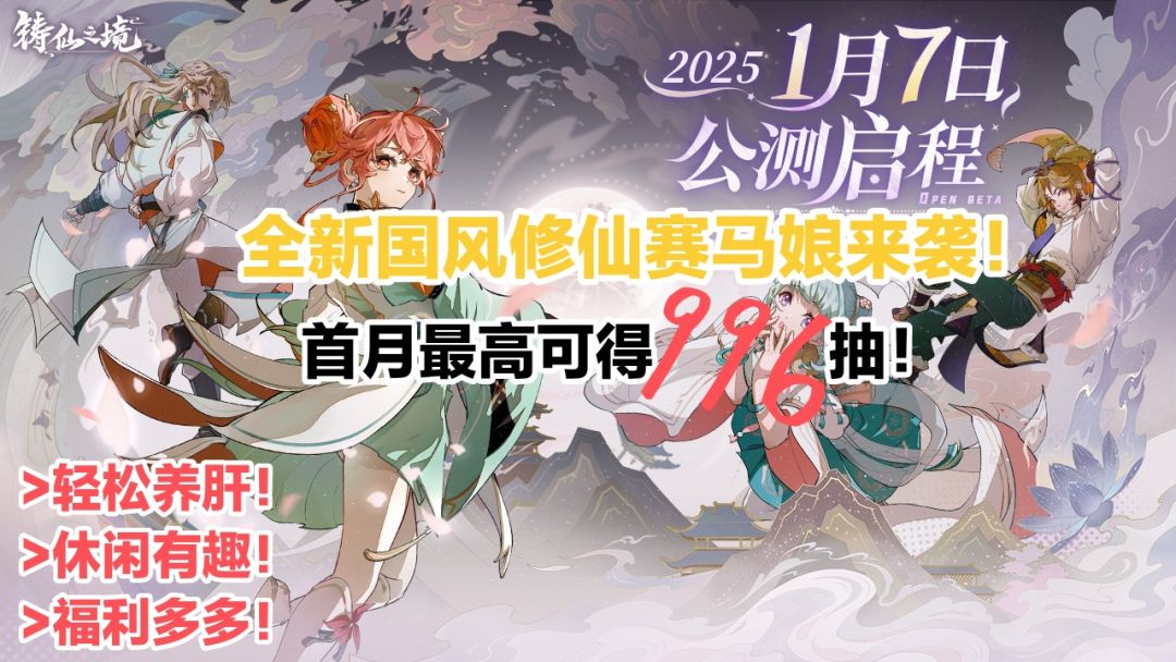 【铸仙之境】全新国风修仙赛马娘来袭,首月最高可得996抽!