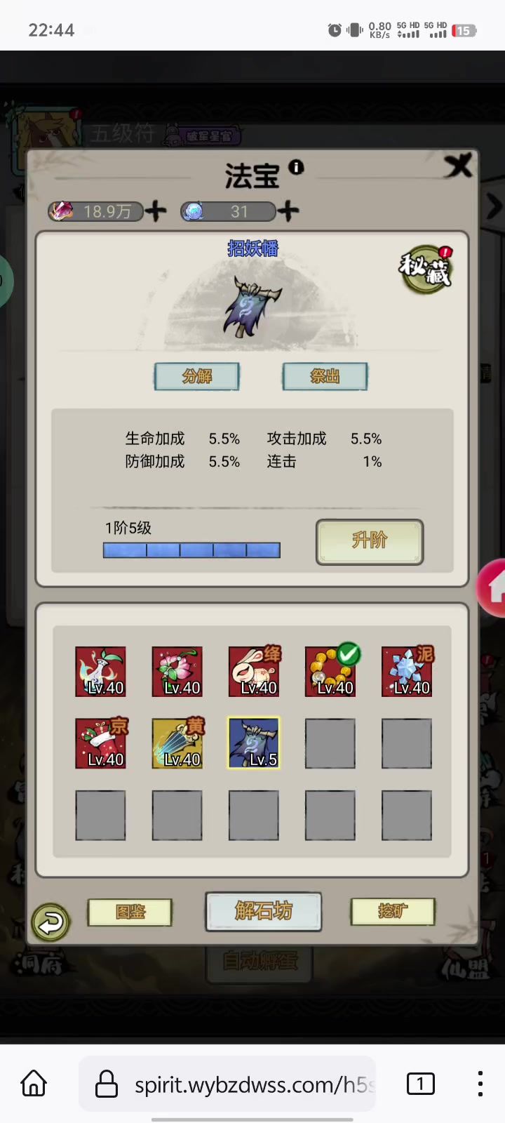 如您选择了法宝进行升级的话,对应的法宝会有高亮边框显示的哦