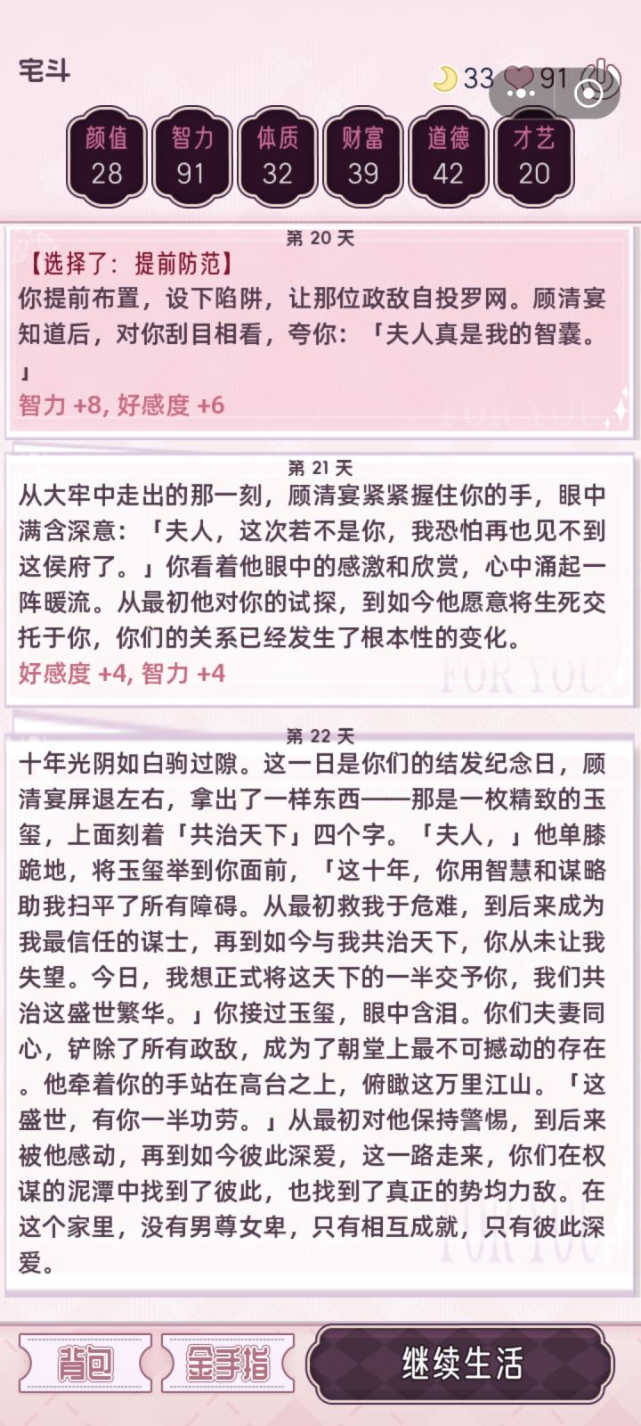二编,登基了开心。记录社交悍匪,20点加在智力上。初始分配+6智力纪念,不知道有没有女帝