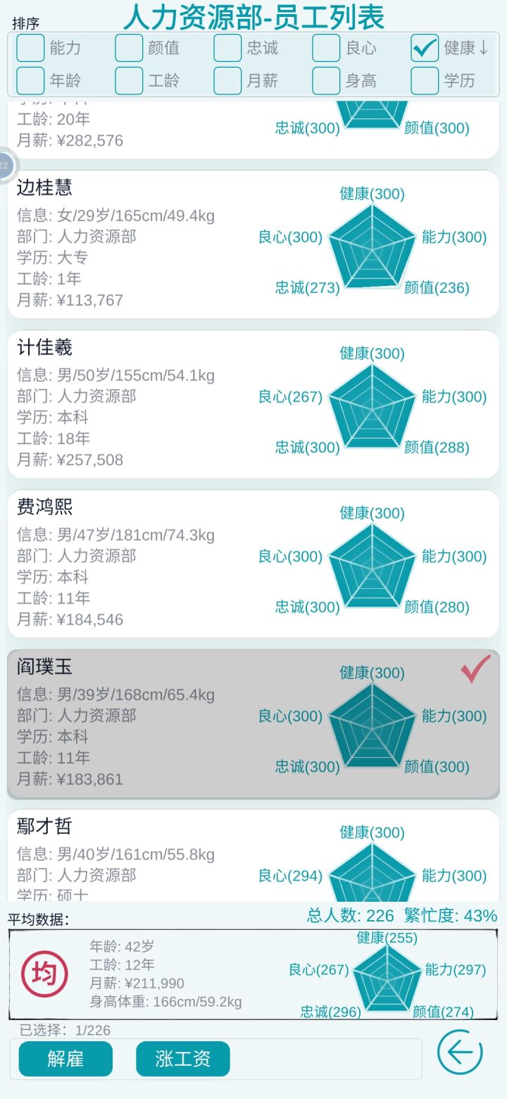 八部门属性全满的员工