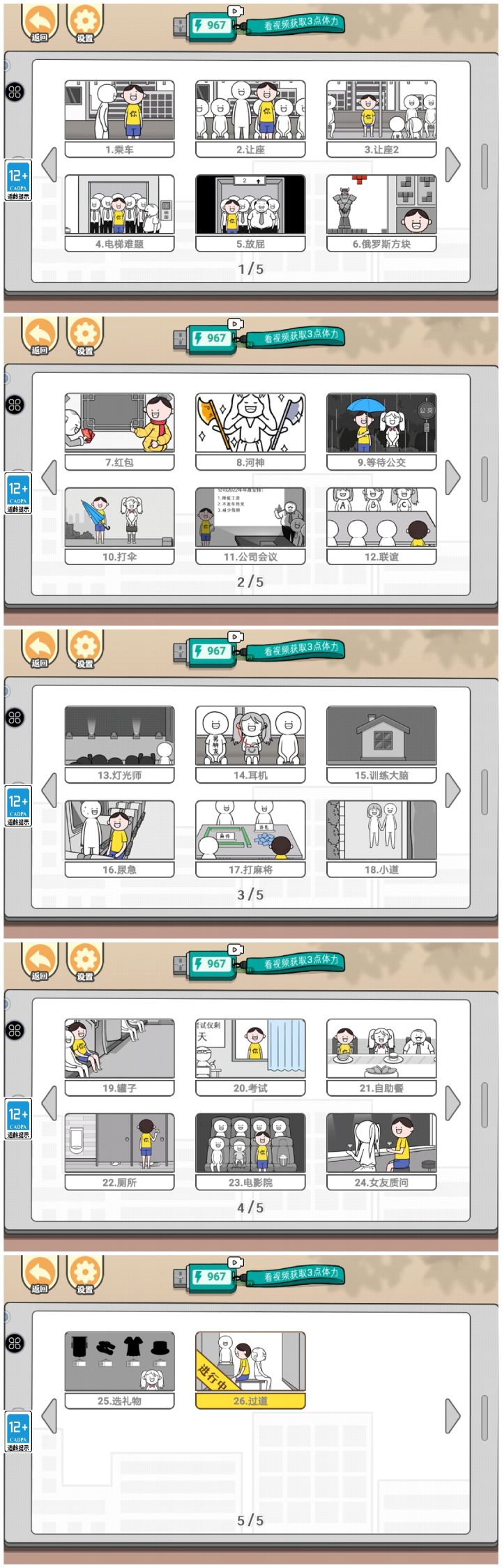 比较搞怪,大多都符合常识,但作为情商天花板的这个游戏,谜题设置稍显不伦不类,可能这方面的设计确实有难度吧,有些解谜有点子奇怪,还有关卡太少啦,只有26关