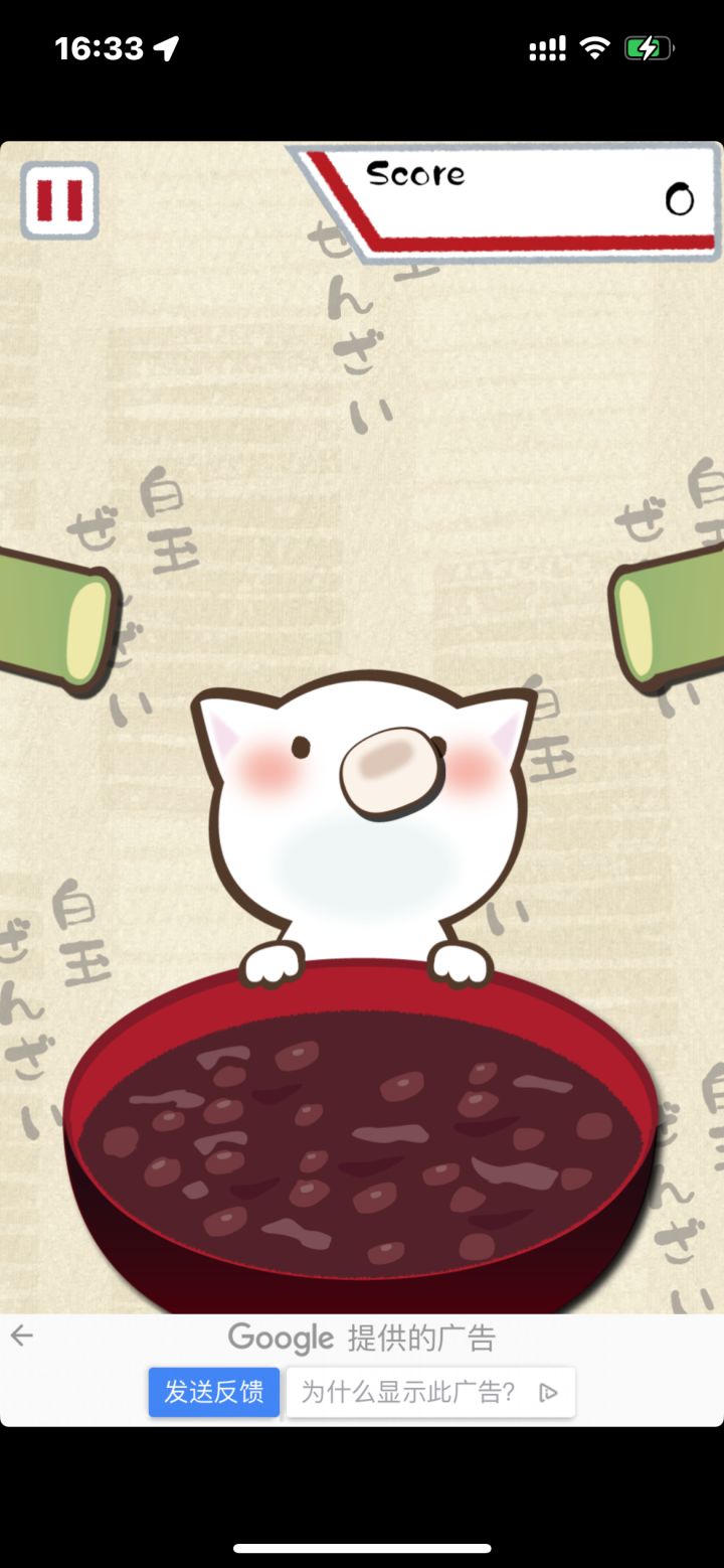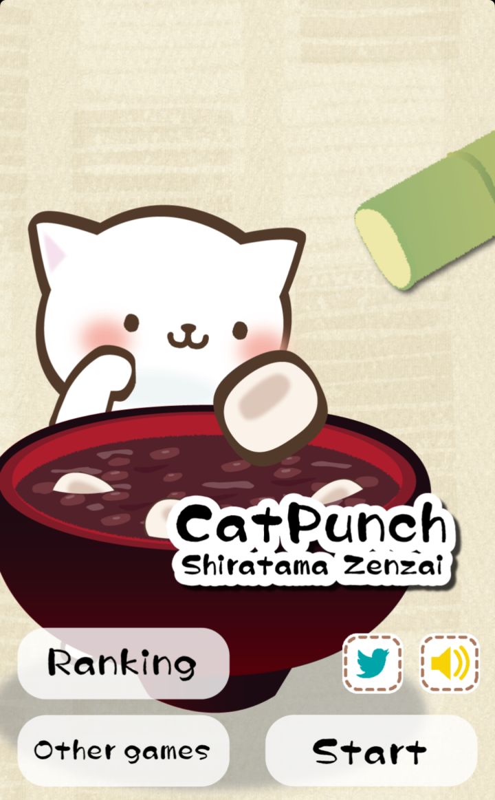 白玉ぜんざい(就是游戏里面那一大碗)大概是日式的红豆年糕汤,猫咪要把随机从左右竹筒掉出来的年糕团子拍进红豆汤里。玩法比较单一,不过猫咪很萌。