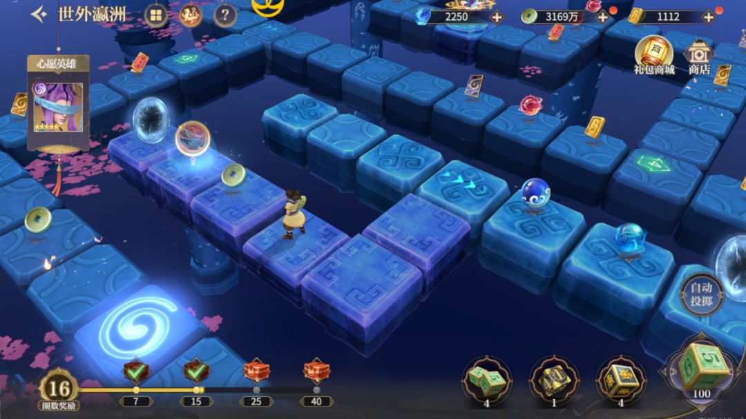 世外瀛洲 玩法界面 玩法规则 主要产出道具 玩法心得 注意距离、准备机关骰,心愿英雄如果选阴阳&豪杰可获取碎片*10,其它系获得对应碎片*20 注意距离、备好乌龟骰子 注意距离、准备机关骰子 玩法内获取的星灵石,可用于购买星宿技能书,激活自己的星宿技,提升人物战力 星宿技能在战斗时有着改变战局的能力 以上,就是