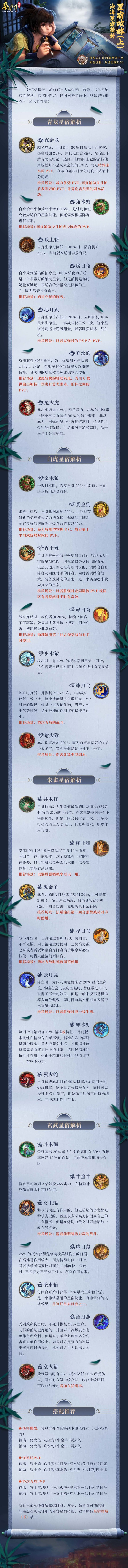 各位少侠好! 在星宿攻略(上)的帮助下,相信各位少侠已经了解了各个星宿的特性。 本期攻略为豪杰和百家阵容的星宿组队细讲。 希望可以帮助可以为少侠了解在实战组队中,星宿的搭配与运用。