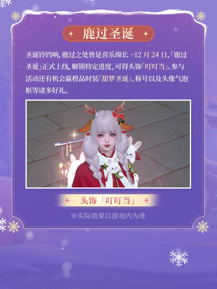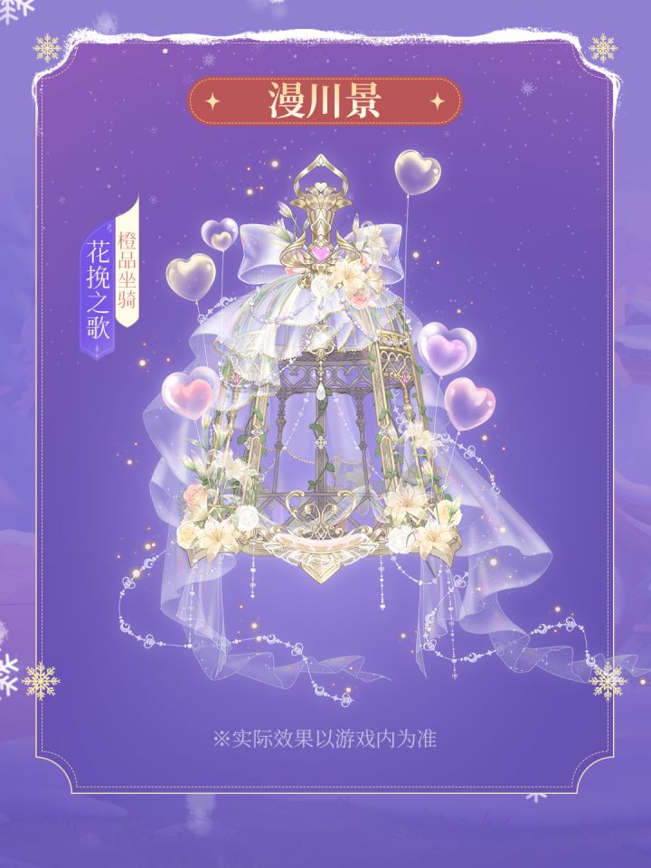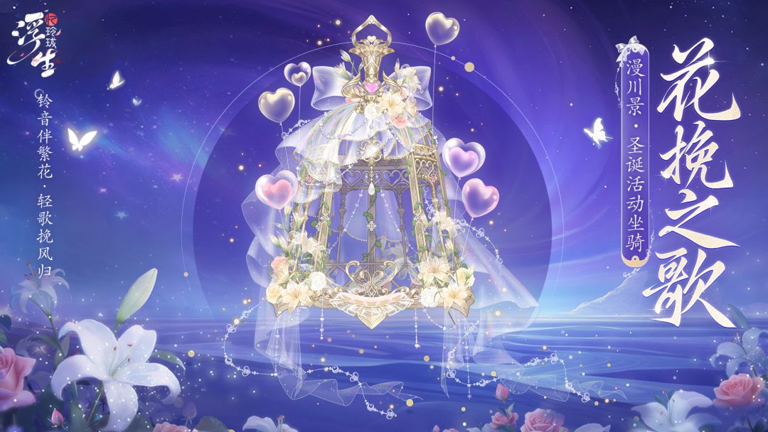 铃音伴繁花,轻歌挽风归。 圣诞节限时活动「漫川景」12月28日即将上线! 大人可通过日常活跃等方式获取活动道具「燕尾令」进行“漫游”,每日登录亦有额外免费“漫游”次数相赠。参与活动,有机会获得限定坐骑「花挽之歌」。 #发现好游戏 #古风游戏 #少女心游戏安利 #浮生忆玲珑 #游戏日常 #