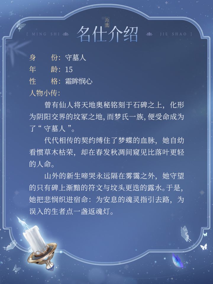 “迷途者,随蝶而行。 ” 魂梦幽转,蝶引微光。关于她的更多故事等待大人亲自来游戏中探寻! >>活动已经开启,大人可通过游戏内「天灵召」活动获得传说绝品尚药神疗随从「梦蝶」! #发现好游戏 #少女心游戏安利 #浮生忆玲珑 #游戏日常