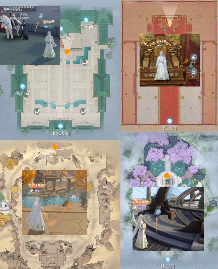 P1汴京大街/烟雨楼/仙音阁/府衙P2花莫村/荒村/郊外/监牢P3乾元门/乾元殿/荒漠遗址/钦天监P4不厌阁#攻略