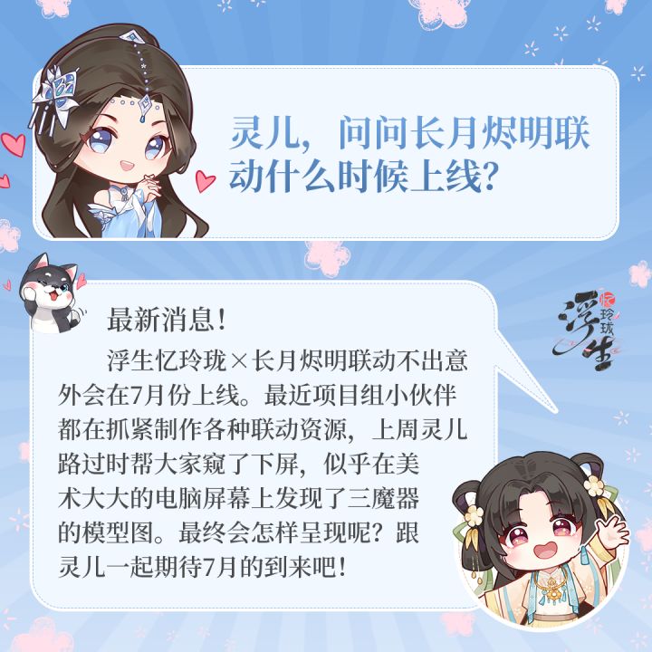 大人们热切关心的问题,灵儿两只耳朵都听到啦!本期《浮生忆玲珑》手游玩家热点问题答疑,为各位大人带来以下疑问的解答:· 玲珑世界即将迎来更多新玩法,爆料抢先看!· 浮生忆玲珑×长月烬明联动最新消息?感兴趣的大人们,请点击查看图片,了解一下吧~