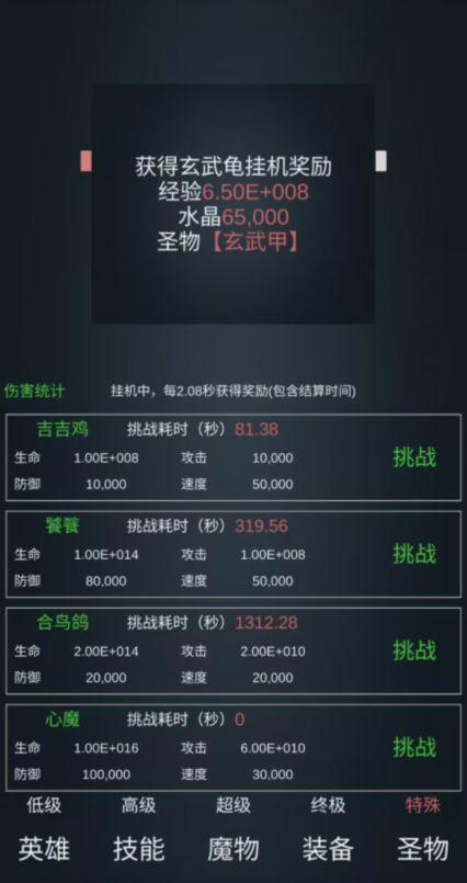 游戏玩法就是放置升级和挂水晶升级技能,通过升级不同的技能打不同的怪物提高每秒的经验和水晶继续打过其他怪物,群里大佬很热情,攻略挺好😁