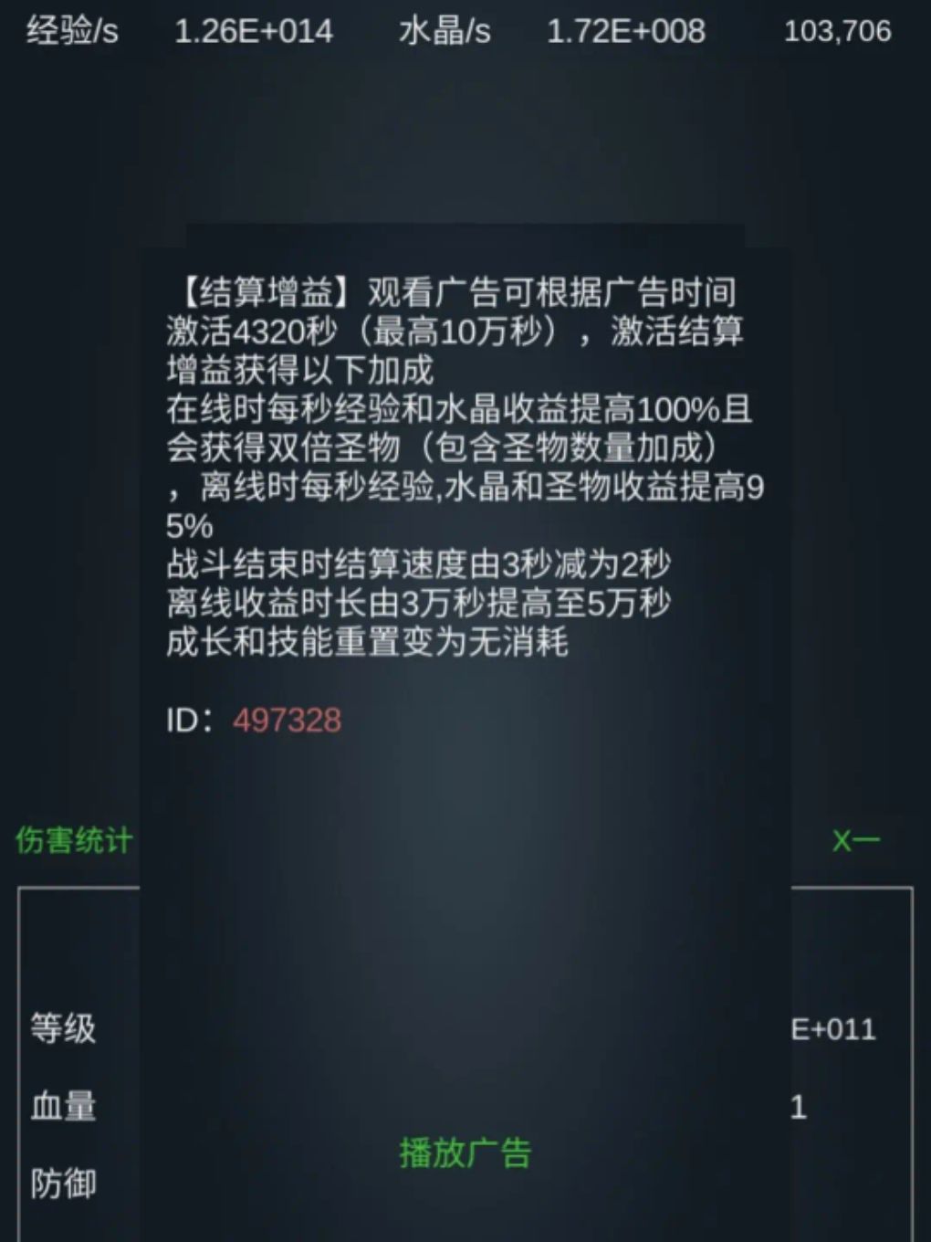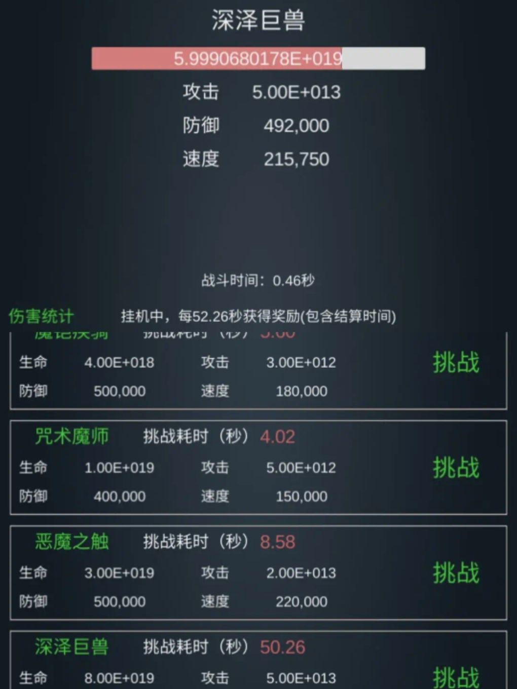 13亿级左右。 圣物:满力量拳套、90%精灵短笛、90%凤凰蛋、满玄武甲、满火炬、满器灵、满鸽子、满金币、满深渊至宝,其他的都不高 装备:2 2 2 3,建议改成 3 2 2 2,更稳妥一点。 技能: 基础:1万亿级力量强化(吸血之刃越高,可以点的越少,我只有1万级),千亿级耐力,百亿级敏捷 霸者:斩击、嗜血一击各百亿,破碎一击千万,重锤亿级(没啥用)。 暗影:疾速10亿级,弱点暴露3百亿级,手里