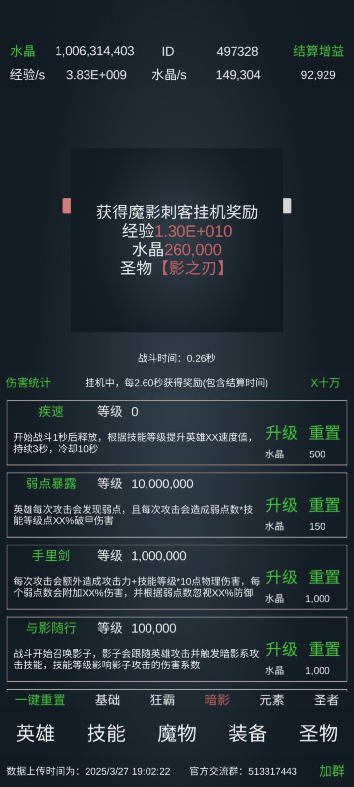前言过关攻略:1.51版本摸索中 此攻略为后来者开路专用,中间走了一些弯路,部分数据可能不太准(新号测试中,部分已修改),但大致参考价值还是有的。如果诸位群友有等级,圣物,水晶需求更低的概率还算可以的过关攻略,欢迎补充! 【重要】给萌新提一句,前期怪多用弱点速推法,弱点流的精髓是弱点暴露,速度也重要但是敏捷训练可以弥补,所以建议一半以上水晶分配给弱点暴露(以下称弱点,弱点击破会直接说击破),