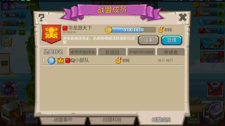 新创的战盟,欢迎新萌们或者高手们来,创都创了,不想浪费100钻石啊😭