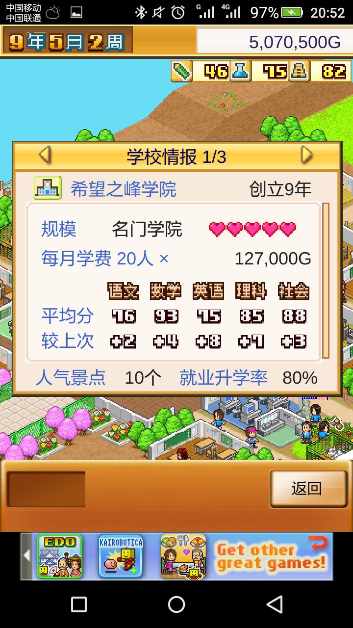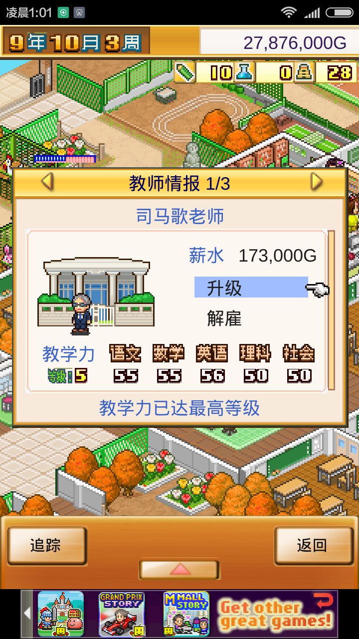 玩了两个高中,刚开始一直负资产,后来终于明白刚开始负资产都是挺正常的,慢慢就找到套路登上人生巅峰了哈哈哈哈,话不多说先上图~首先下载了kairo club把剩下的地图解锁了,然后选择了那个很多有钱人的地图,第一次玩的时候一直不懂扩充学院,所以学校只有三个课室。所以这一次我直接就弄了六个课室,经验就是第一周都是各种负资产,第四周就会有几十万上下,一有钱就马上课题研究,设施研究,农场鸡窝都是收入的主