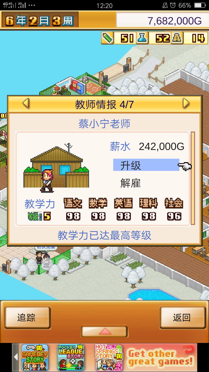此帖随时进行修改。我发现一个秘密,每个老师的成长属性都不一样,表面上他的属性很低,但是每次升级都能得到海量属性点,不同老师每升一级可获得1~222,已知的一个幽灵体的老师升第四级只有1点,第五级时获得222点,判断任何老师优劣都需要到满级后看属性值,辞职后再聘请有几率出现增加工资的要求。下面这个这个老师每次升级有90点,想想这有多恐怖,下面是截图:建议前期不要把资源浪费在授课方面,优先培养