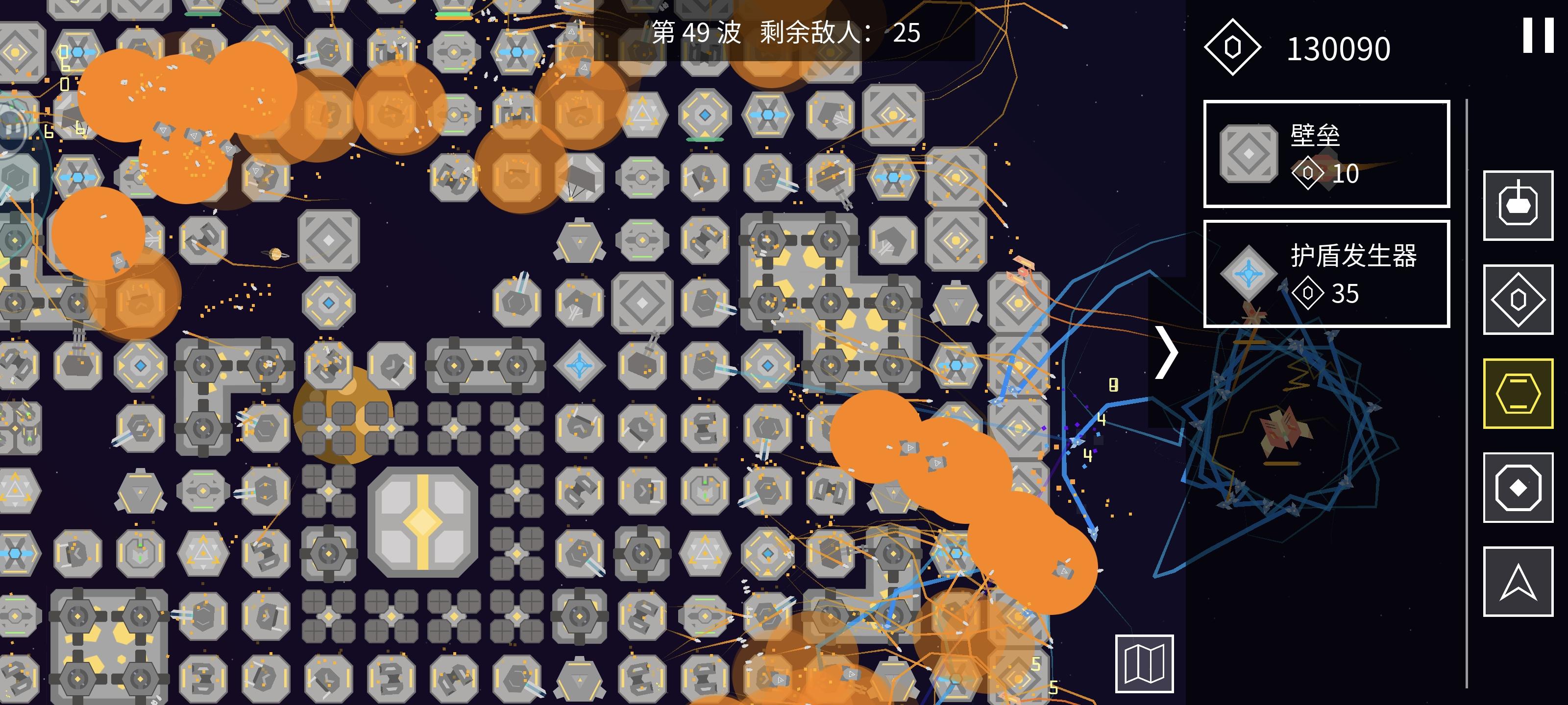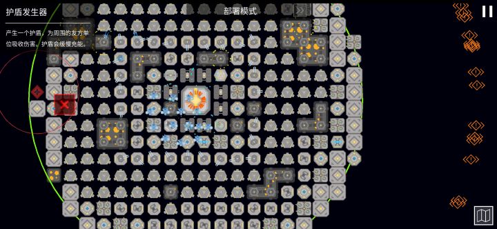 远方 : 游玩时下边有一个类似地图的按钮,点击后可以进入部署模式,在部署模式下游戏暂停,但可继续布置建筑,灵活运用该按键能迅速安排防御,面临破防情况时也可利用该按键尝试快速重建防御