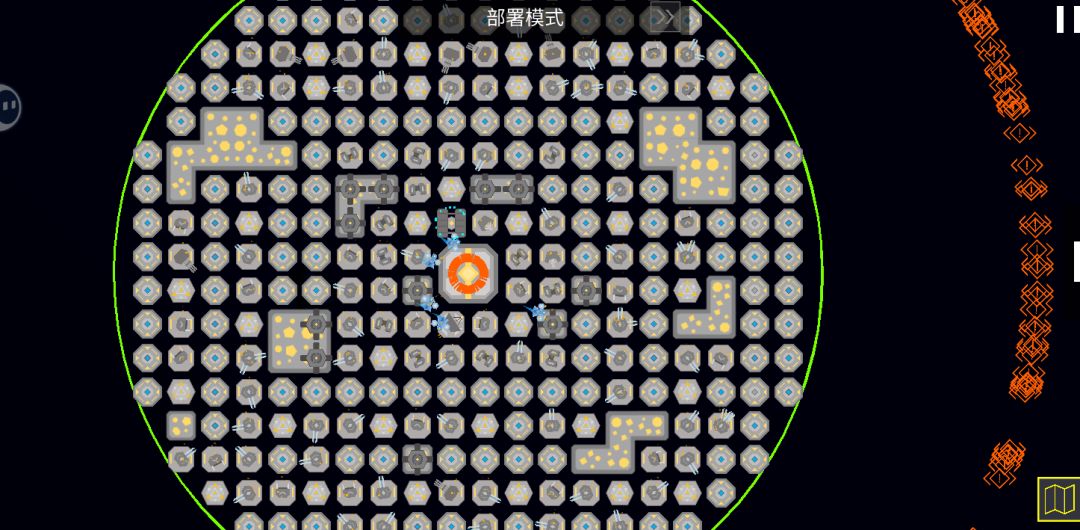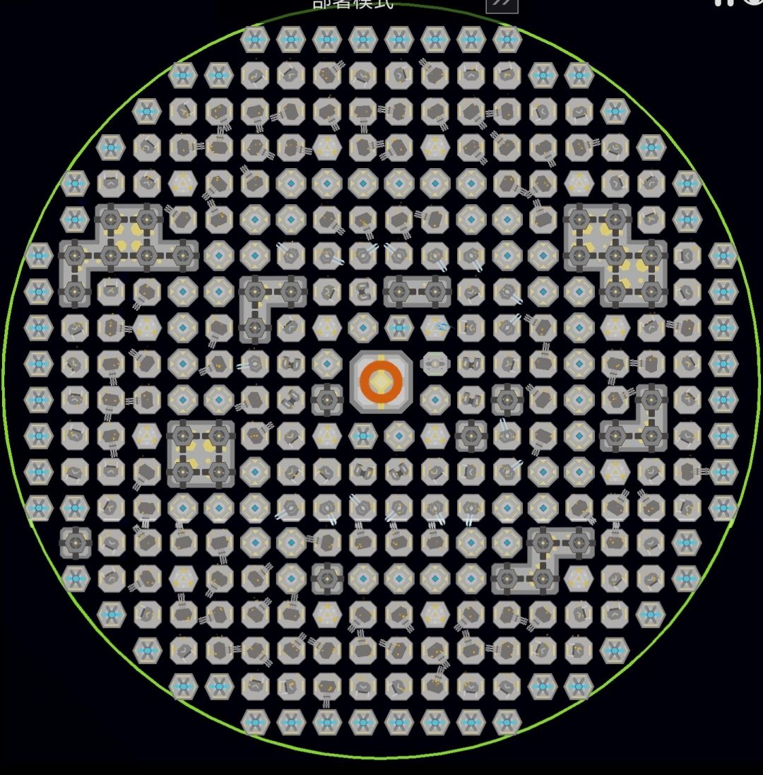 个人感觉非常完美的阵型,优化了很多次,全图超频,护盾富余,很多没有必要的炮塔都被优化了。 经过图鉴确认过数据,火箭发射器较弱;导弹发射器面板比激光炮优秀,但是非常卡顿,所以只能用于应急;二级机枪是最强单体炮塔;炸弹抛射塔是真正的最强炮塔,但是比较卡顿,不能多放。