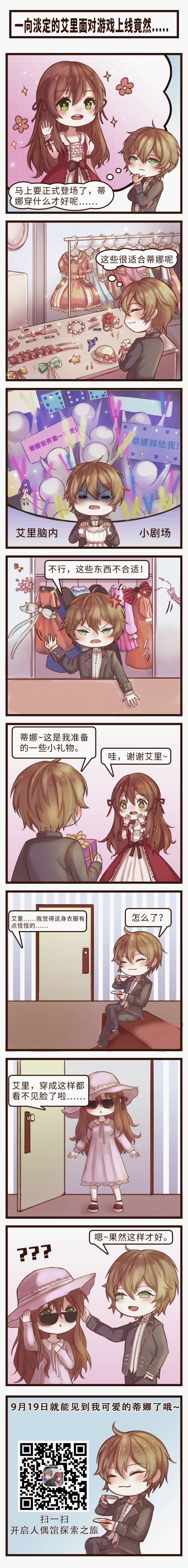 周五了——周末了——放假了——!不知道带噶七夕节是否快乐呢,上线消息是否有让大家开森呢,阿西自己倒是因为终于能公布消息通宵唱歌了(捂脸)而除了制作组小姐姐们、阿西以外,妹想到一向镇定艾里也……?一起来康可爱条漫叭!