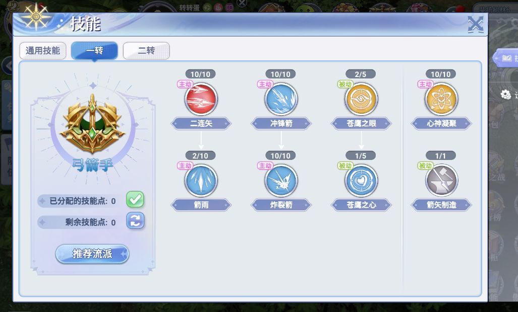 今天给大家分享一下仙境传说RO巴风特之怒中的弓手职业的技能点该如何加首先我们在新手期的时候会跟据系统的一个推荐选择定位是爆发射手。 而我们今天主要来讲一下爆发流的弓手首先,我们可以看到爆发流射手只有5个技能你不要感觉他弱,他反而可以有着很高的一个伤害,并且第6个技能在后期会给我们带来一个大幅度的提升。首先我们先来看一下技能,小娱在这里给大家做了一下分类:二连矢和冲锋箭是主要打伤害的技能,建议点满,